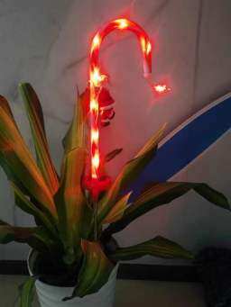 クリスマスツリー式ソーラーライト|キャンディケーン型・イルミネーション・屋外・庭飾り・サンタさん付き