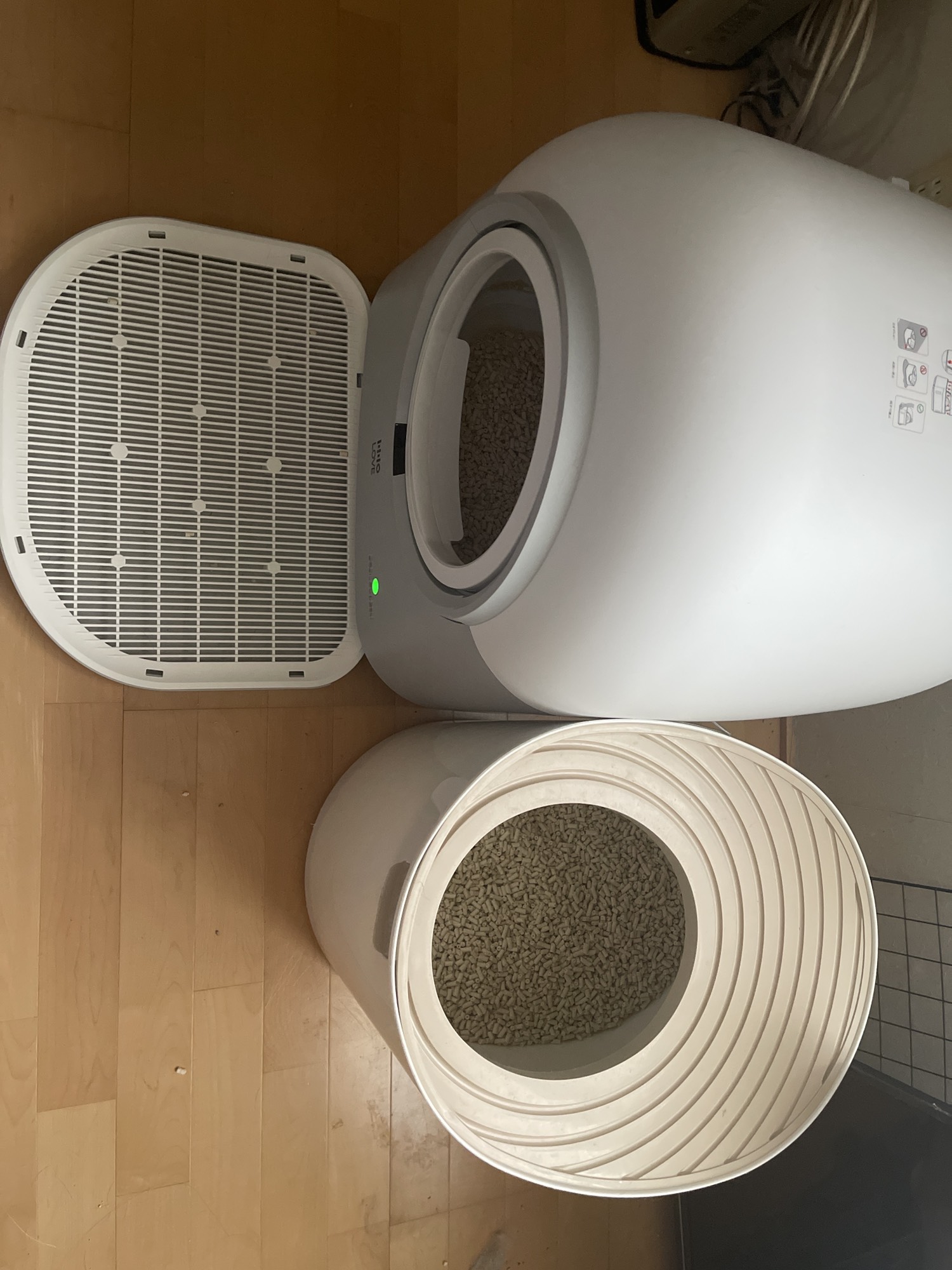 2匹目の子猫お迎えのタイミングで注文しました。 配送も素早く丁寧でとても良かったです。 子猫の方は慣らし中のため、まだ成功していませんが、知らない間に先住猫が使用済みでした。 回数や猫の体重、どちらがトイレ使ったかがアプリてわかる所もとても素晴らしかったです。 大きさは、箱大きく心配しましたが、元々使っていたシステムトイレより少し大きいくらいで意外とコンパクトだと思います。背面からダストボックスがスライド着脱できる所もポイント高いです。 子猫の方も、慣れてくれるといいなと思います。