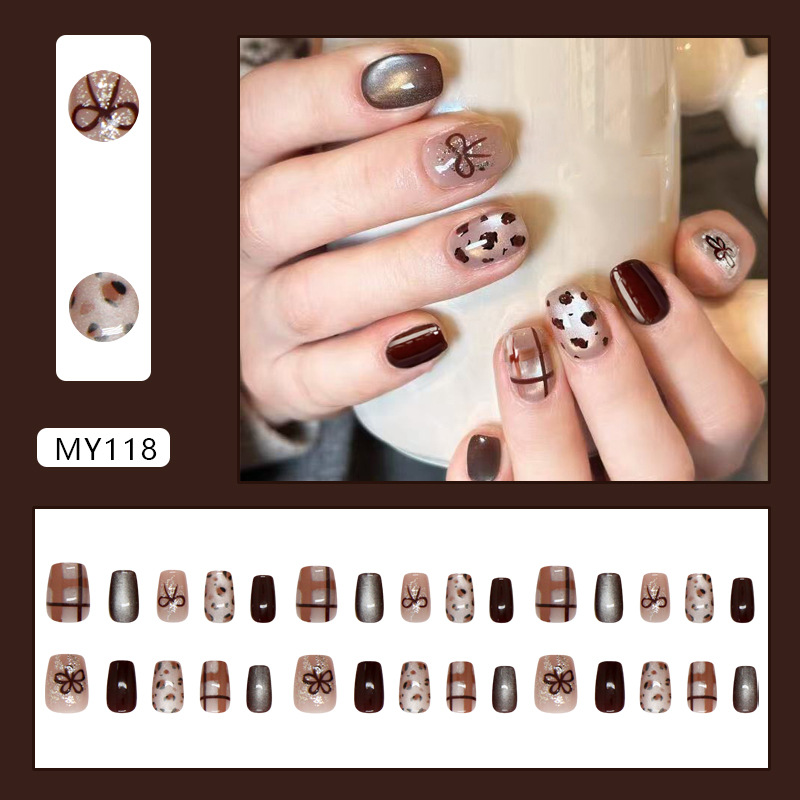 【30枚】ネイルチップ|レトロ・チェック柄・ヒョウ柄・細かいラメ・花・リボン・キャッツアイ・取り外し可能|undefined